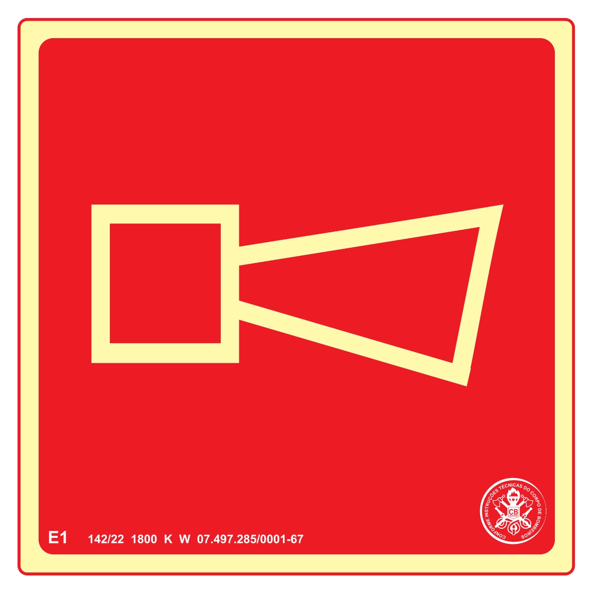 A Placa E1 significa "Sirene" e indica a localização de um alarme sonoro. Ela é usada para orientar as pessoas sobre onde fica o dispositivo que emite o som para alertar sobre a emergência.