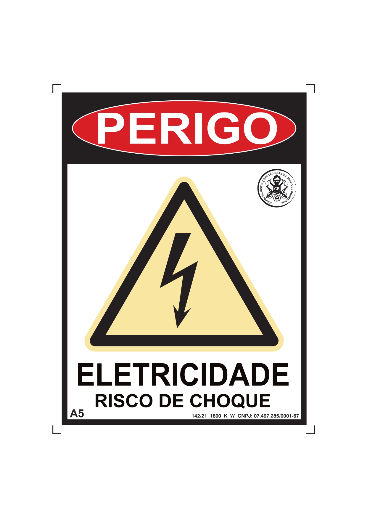 A placa A5 significa "Perigo, Risco de Choque Elétrico" e é usada para alertar sobre áreas com instalações elétricas perigosas, como perto de subestações, geradores ou painéis de disjuntores. É uma sinalização de alerta triangular com o símbolo de um raio no centro para identificar perigos iminentes e evitar acidentes. Geralmente é feita de material fotoluminescente, o que faz com que brilhe no escuro.