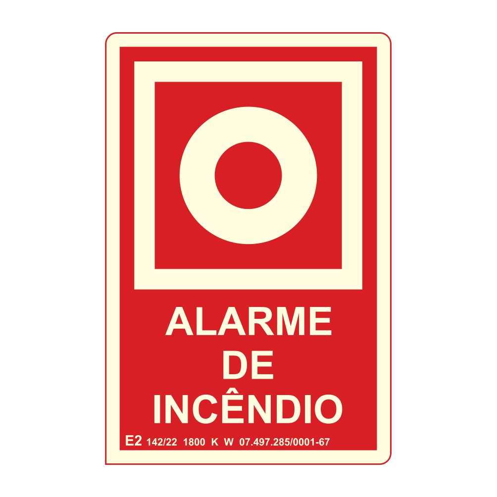A placa de sinalização de incêndio E2 "Alarme de Incêndio"  indica a localizaçao do dispositivo acionador de alarme.