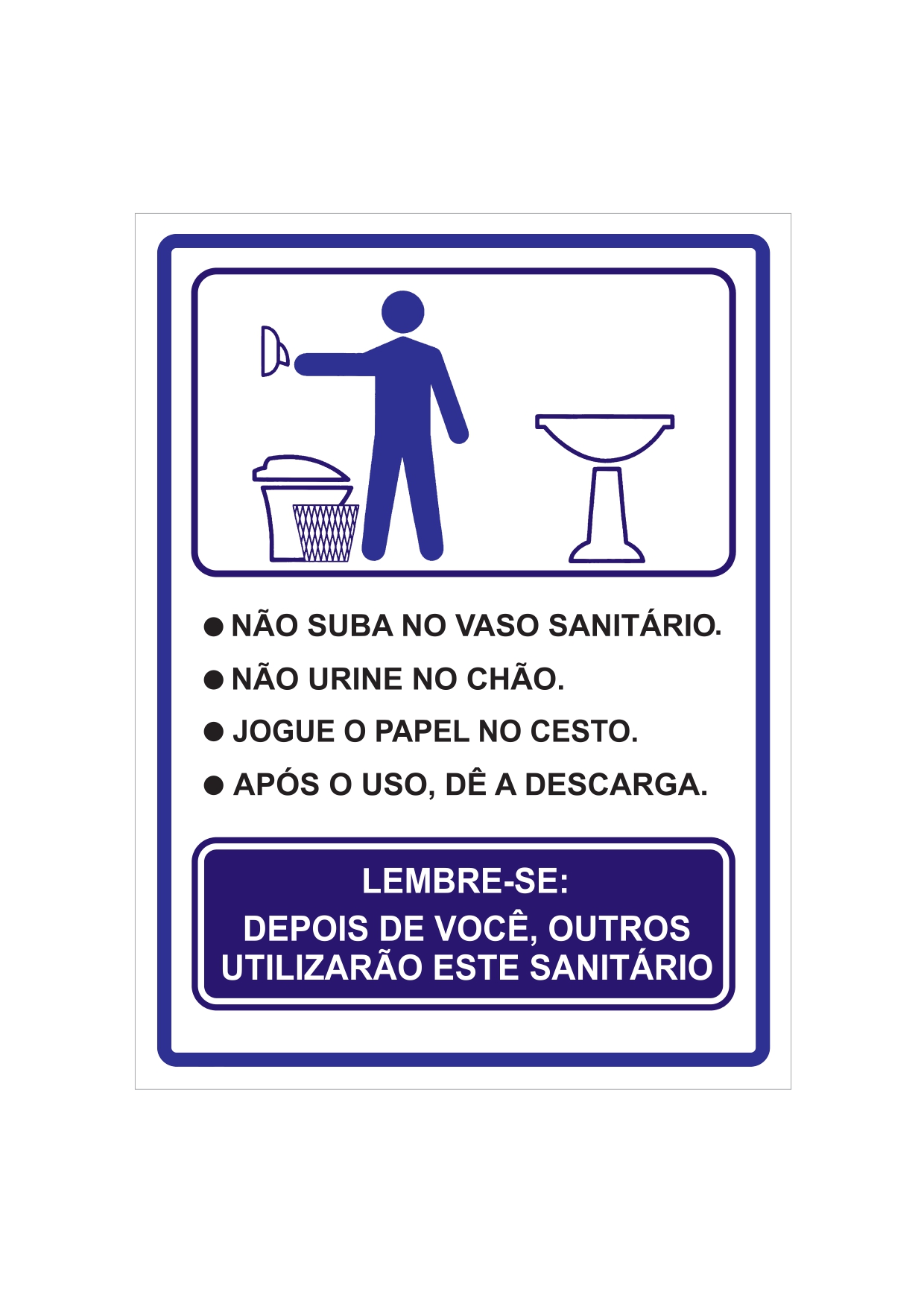 Placas de sanitários com regras são essenciais para manter organização e a higiene, e geralmente listam as seguintes instruções: não jogar lixo no vaso, manter o local limpo e preservar a higiene. Elas devem seguir as normas técnicas de sinalização, como a NBR 9050, que recomenda que as placas de banheiros com regras devem conter símbolos claros e instruções adequadas ao uso do local.