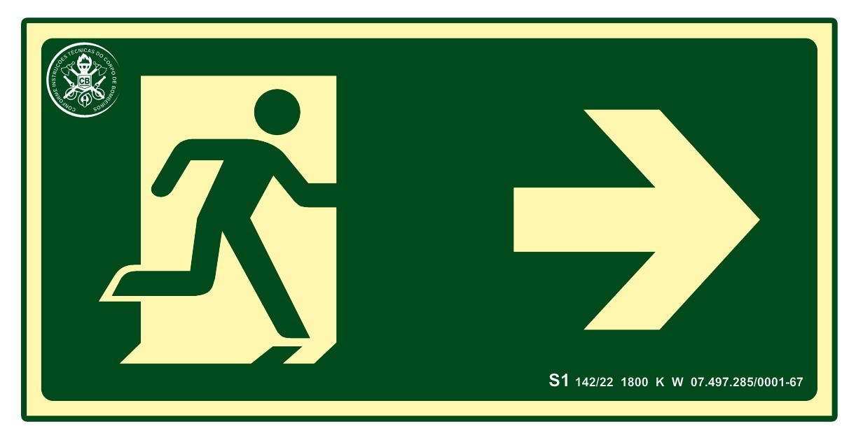 A função principal da placa S1 é indicar a direção da saída para a direita em rotas de fuga. Ela é uma sinalização de orientação e salvamento, essencial para guiar as pessoas durante uma evacuação rápida em situações de emergência, como incêndios ou falta de energia.
