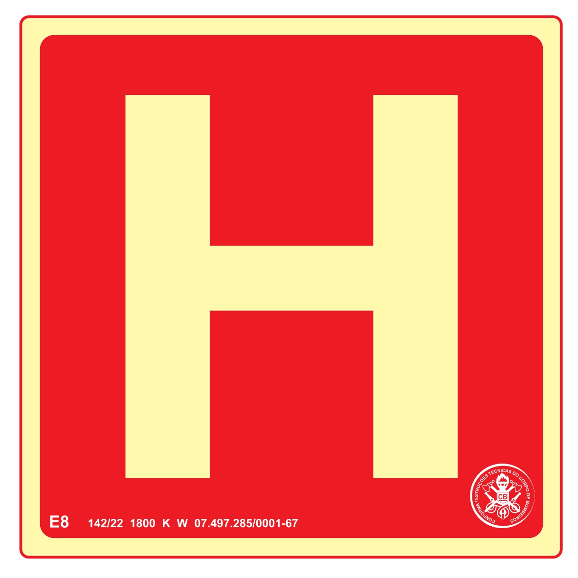 • Tipo de sinalização: É uma placa quadrada, com fundo vermelho e um pictograma branco de uma mangueira ou da letra "H".